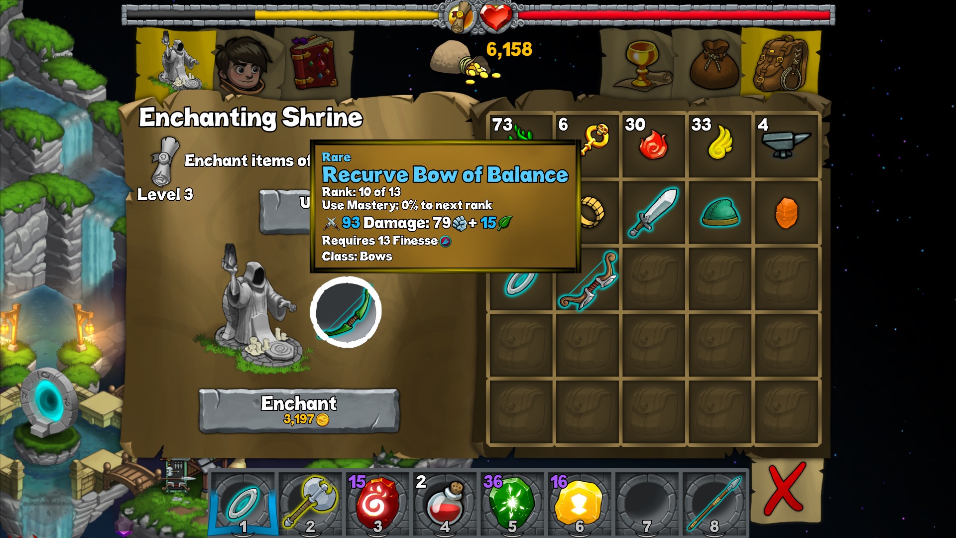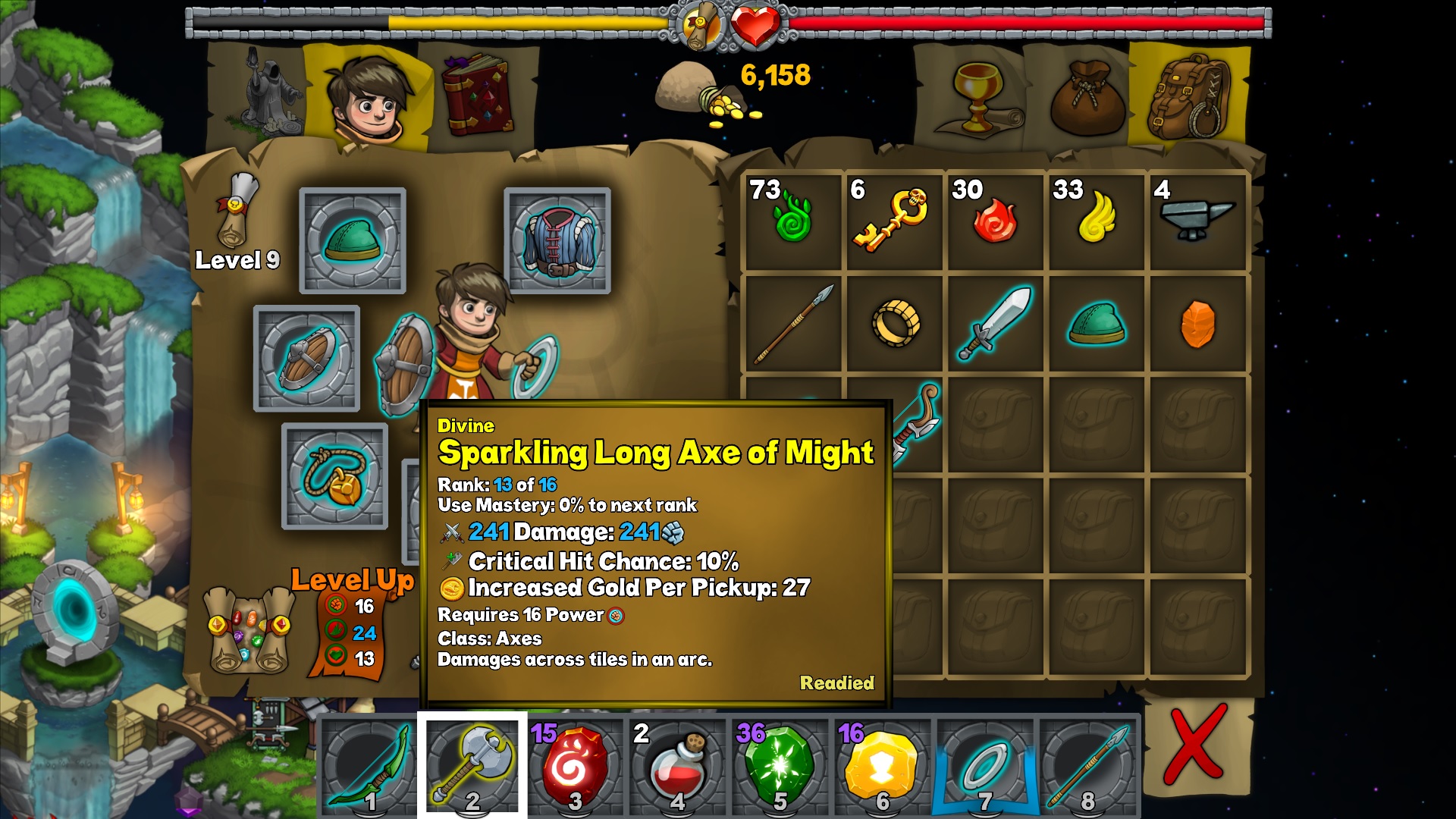 Niveau RPG, c’est un peu le désert. Avec des monologues à dérouler, trois caractéristiques à augmenter à chaque level avec quatre points et pas de construction de personnage, on ne pourra pas vraiment parler de RPG, mais vraiment de Roguelike. On gagne des points d’expérience en tuant des monstres ou en trouvant des stèles dans les donjons, mais aussi en vidant un niveau de tous ses monstres ou de tous ses coffres. Rien de bien évolué.