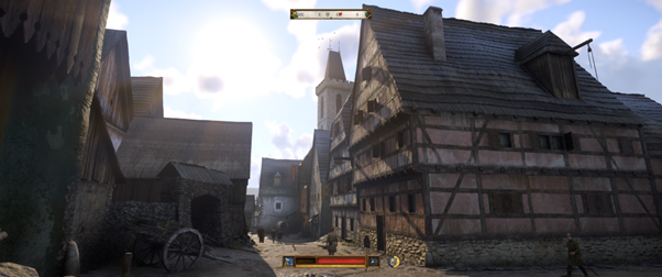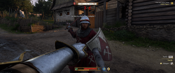 Heureusement, la solution militaire n’est jamais la seule : les dialogues, particulièrement fouillés, permettent au joueur de se sortir de situations périlleuses selon les compétences de son personnage (éloquence, charisme et force). Ces caractéristiques dépendent de votre niveau, mais aussi d’autres facteurs comme votre tenue, votre propreté, etc… ce qui vous amènera à bien prendre soin de Henry au cours de vos aventures.